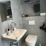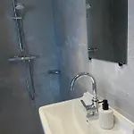 I badrummet finns en duschkabin, en separat toalett och ett badkar samt hårtorkar och handdukar.